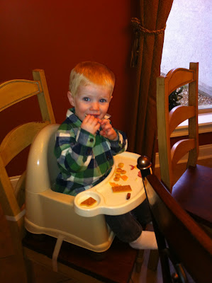 He is also into dipping things lately. I showed him how to dip carrots in ranch. Then he noticed me dipping my hash browns in ketchup and so he dipped everyone of his hash browns too. He barely gets any on it, but he seems to enjoy it.